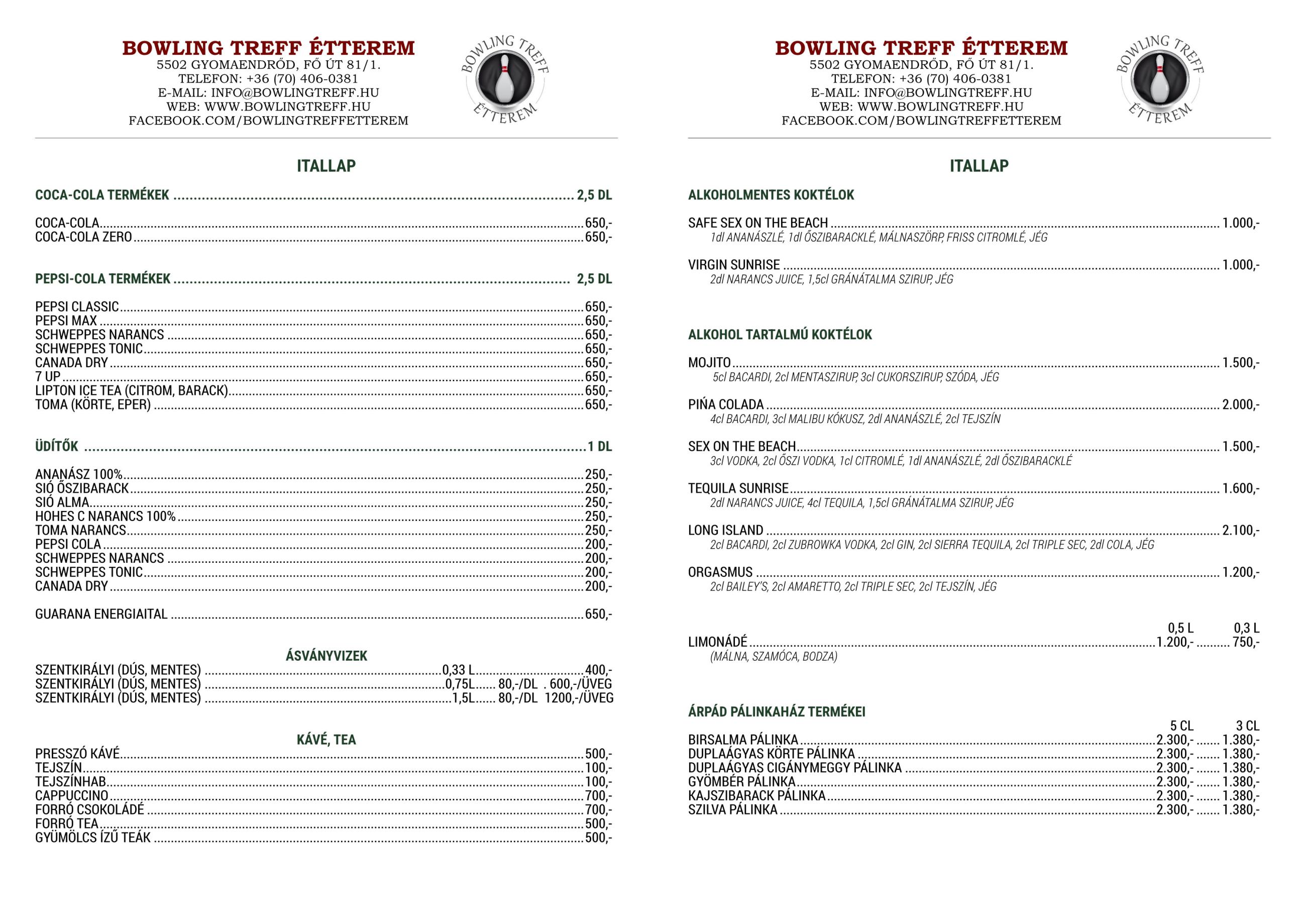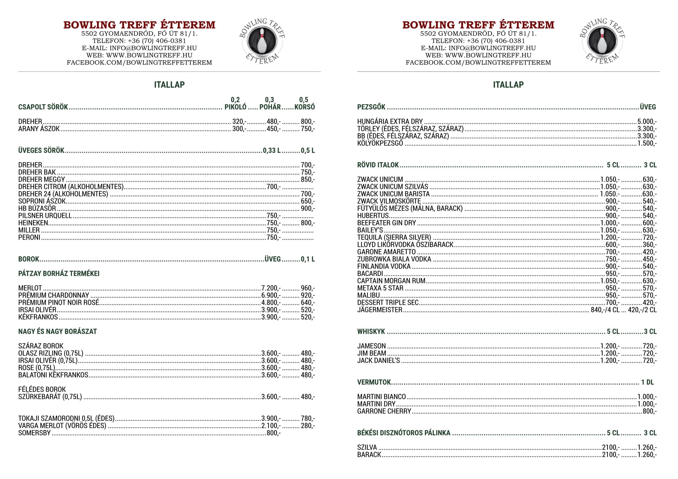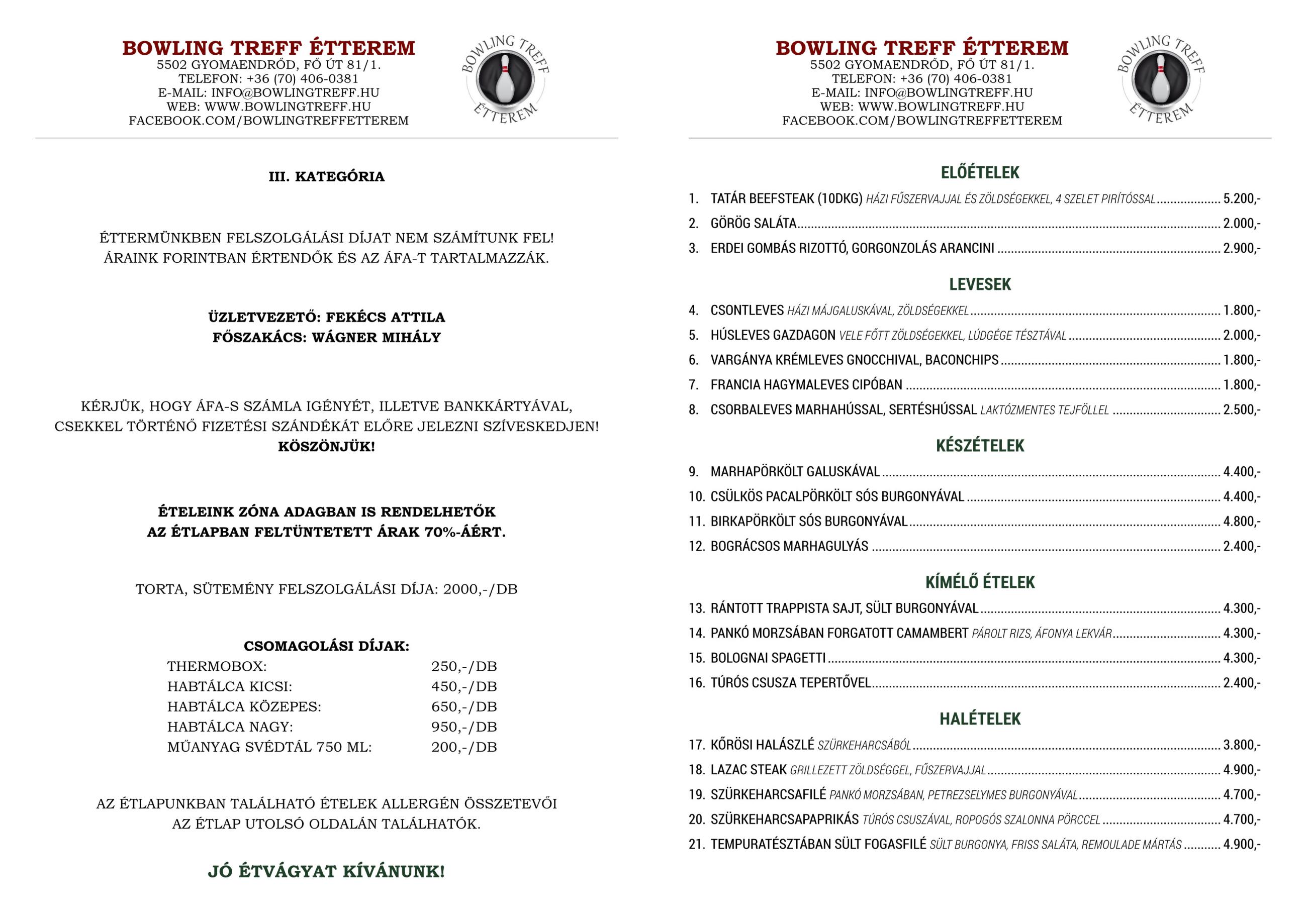 Az étlapban szereplő áraink forintban (HUF) értendők!